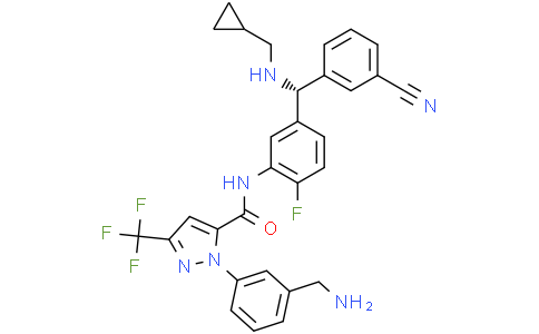 Berotralstat (BCX7353) 是一种具有口服活性的 plasma kallikrein 抑制剂。Berotralstat 可以减少脑水肿,并用于胶质母细胞瘤和遗传性血管水肿的研究。