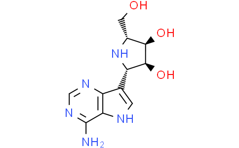 Galidesivir (BCX4430),一种腺苷类似物和直接作用的抗病毒药物,能破坏病毒 RNA 依赖的 RNA 聚合酶 (RdRp) 活性。Galidesivir 在体外对多种 RNA 病毒病原体具有活性,包括丝状病毒和新兴的感染因子,如 MERS-CoV、SARS-CoV 和 SARS-CoV-2。Galidesivir 对一些负义 RNA 病毒的 EC50 在 ~3 到 ~68 μM。