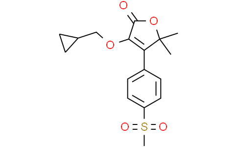 Firocoxib (ML 1785713) 是一种有效的,选择性的,口服活性的 COX-2 抑制剂,IC50 为 0.13 μM。Firocoxib 对 COX-2 的选择性比对 COX-1 的选择性高 58 倍 (IC50 为 7.5 μM)。Firocoxib 具有抗炎作用。
