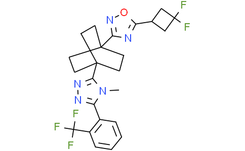 MK-4101 是一种 SMO 拮抗剂 (对 293 细胞的 IC50 为 1.1 µM),MK-4101也是一种有效的、选择性的Hedgehog (Hh)信号通路抑制剂 (对小鼠细胞的 IC50 为 1.5 µM;对 KYSE180 食管癌细胞的 IC50 为 1 µM)。MK-4101对髓母细胞瘤和基底细胞癌(BCC)表现出强大的活性。MK-4101通过抑制肿瘤细胞的增殖和诱导广泛的细胞凋亡表现出抗肿瘤活性。