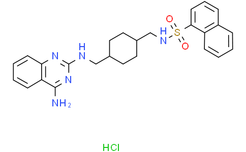 CGP71683 hydrochloride 是一种竞争性的神经肽受体 (neuropeptide Y5 receptor) 拮抗剂,Ki 值为 1.3 nM,在细胞膜中,对 Y1 和 Y2 受体无明显作用 (Ki,>4000 nM,200 nM)。