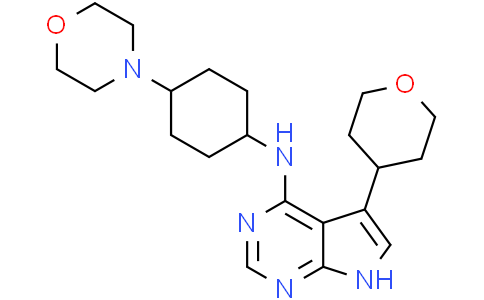 AZ1495 是一种有效的白细胞介素-1 受体相关激酶 4 (IRAK4) 抑制剂,具有口服活性。AZ1495 对 IRAK4 和 IRAK1 具有良好的理化和激酶选择性,其 IC50 值分别为 0.005 μM 和 0.023 μM。AZ1495 具有 IRAK4 抑制作用,Kd 值为 0.0007 μM。AZ1495 可用于弥漫大 B 细胞淋巴瘤 (DLBCL) 的研究。