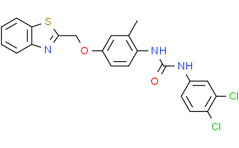 Diflapolin 是一种高活性的双 5-脂氧合酶激活蛋白 (FLAP)/可溶性环氧化物水解酶 (sEH) 抑制剂,具有显著的抗炎作用和较高的靶向选择性。Diflapolin 抑制 IC50 分别为 30 和 170 nM 的完整人单核细胞和中性粒细胞中 5-LOX 产物的形成,并抑制分离的 sEH 的活性(IC50=20 nM)。