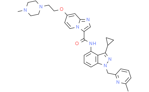 ARRY-382 是 CSF1R 的高选择性口服抑制剂,IC50 为 9 nM。