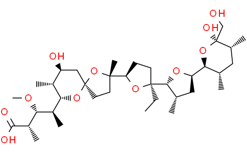 Monensin 是由肉桂链霉菌 (Streptomyces cinnamonensis) 分泌的抗生素。Monensin 是一种介导 Na+/H+ 交换的离子载体。Monensin sodium salt 引起细胞多泡体 (MVBs) 增大并调节外泌体的分泌。