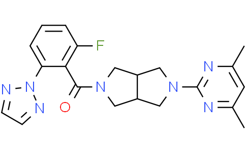 Seltorexant (JNJ-42847922) 是一种具有口服活性的,高亲和性以及选择性的 orexin-2 受体 (OX2R) 拮抗剂 (人和大鼠中的 OX2R 的 pKi 值分别为 8.0 和 8.1)。Seltorexant (JNJ-42847922) 穿过血脑屏障,迅速占据大鼠大脑中的 OX2R 结合位点。
