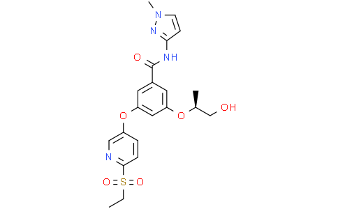 MK-0941 free base 是具有口服活性的葡糖激酶 (glucokinase) 抑制剂,在葡萄糖浓度为 2.5 和 10 mM 的条件下,对重组人 glucokinase 的 EC50 值分别为 240 和 65 nM。MK-0941 free base 具有较强的降血糖活性,是研究 2 型糖尿病的候选药物。