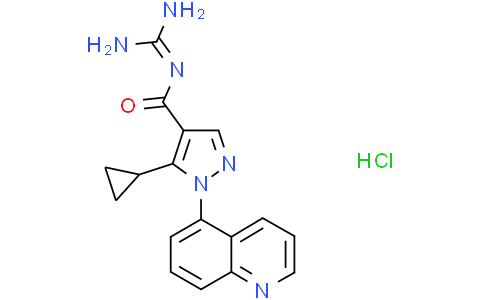 Zoniporide (CP-597396) hydrochloride 是 1 型钠氢交换剂 (NHE-1) 的有效和选择性抑制剂。Zoniporide hydrochloride 抑制人 NHE-1 (IC50=14 nM),与其他 NHE 亚型相比具有大于 150 倍的选择性,并有效抑制离体 NHE-1 依赖性的人血小板溶胀 (IC50=59 nM)。