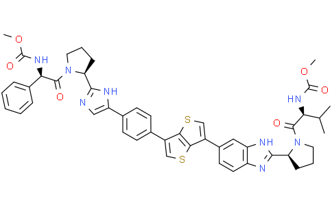 Samatasvir (IDX71) 是一种有效的,具有口服活性的 NS5A HCV 复制抑制剂。Samatasvir 对感染性 HCV 和复制子有效且有选择性,在基因型 1至5 复制子中,EC50 在 2 至 24 pM 的范围内。