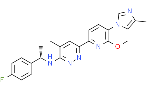 BPN-15606 是一种高效的口服活性 γ-secretase 调节剂 (GSM),可减弱 SHSY5Y 神经母细胞瘤细胞产生 Aβ42 和 Aβ40 的作用,IC50 值分别为 7 nM 和 17 nM。BPN-15606 可以降低大鼠和小鼠中枢神经系统中的 Aβ42 和 Aβ40 水平。BPN-15606 具有良好的 PK/PD 特性,包括生物利用度,半衰期和清除率。