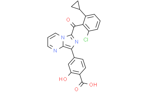 GNE-6468 是一个有效且有选择性的 RORγ (RORc) 反向激动剂,EC50 值为 2 nM。GNE-6468 抑制 PBMC 中 IL-17 的 EC50 值为 30 nM。