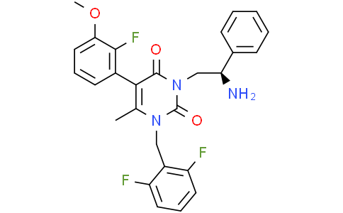 NBI-42902 是一种具有口服活性的促性腺激素释放激素受体 (GnRH receptor) 强效功能性和竞争性拮抗剂,其 IC50 值为 0.79 nM, Ki 值为 0.56 nM。NBI-42902 抑制 GnRH 诱导的磷酸肌醇 (IP) 积累, Ca2+ 通量和 ERK1/2 激活。NBI-42902 抑制阉割雄性猕猴血清促黄体生成素 (LH) 水平。NBI-42902 可用于性激素相关疾病的研究。