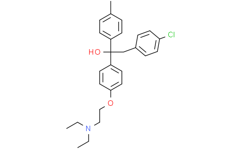 Triparanol (MER-29) 是一种有效的胆固醇生物合成 (cholesterol biosynthesis) 抑制剂,可阻断 24-脱氢胆固醇还原酶(24-DHCR)。Triparanol 可以干扰 Hedgehog 信号分子的翻译后修饰及其受体 PTCH1 的甾醇传感结构域,导致 Hh 信号的下调。Triparanol 抑制人类肿瘤生长。