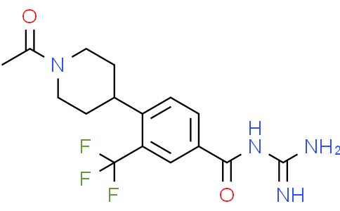 BI-9627 是一种钠氢交换异构体 1 (NHE1) 抑制剂,在细胞内 pH 恢复 (pHi) 和人血小板溶胀试验中 IC50 值为 6 和 31 nM。BI-9627 对 NHE2 的选择性大于 30 倍,对 NHE3 没有明显的抑制活性。BI-9627 表现出较低的 DDI (药物-药物相互作用) 潜力,在大鼠和犬体内良好的药代动力学,在离体心脏缺血-再灌注损伤模型中表现出显著的活性。