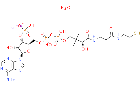 Coenzyme A (CoASH) 是一种普遍存在的重要辅因子,是柠檬酸循环和脂肪酸代谢的酰基载体和羰基激活基团。Coenzyme A 在柠檬酸循环中丙酮酸的氧化以及羧酸 (包括短链和长链脂肪酸) 的代谢中起着核心作用。