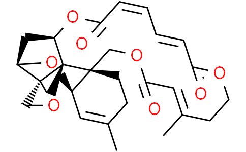 Verrucarin J (Muconomycin B) 是 Myrothecium 真菌家族的代谢物。Verrucarin J 诱导活性氧 (ROS) 生成和癌细胞系凋亡 (apoptosis),例如 A549、HCT 116 和 SW-620 细胞。Verrucarin J 具有抗 Candida albicans 和 Mucor miehei 的活性。Verrucarin J 抑制沙粒病毒 Junin (JUNV) 产量,IC50 为 1.2 ng/mL。