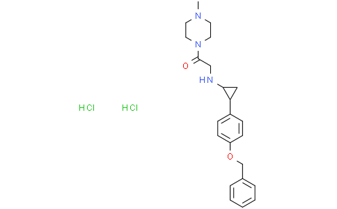 RN-1 dihydrochloride 是一种有效的、可透过血脑屏障、不可逆的、选择性的赖氨酸特异性脱甲基酶 1 (LSD1) 抑制剂,IC50 为 70 nM。RN-1 dihydrochloride 对 LSD1 的选择性高于 MAO-A 和 MAO-B,IC50 值分别为 0.51 μM 和 2.785 μM。