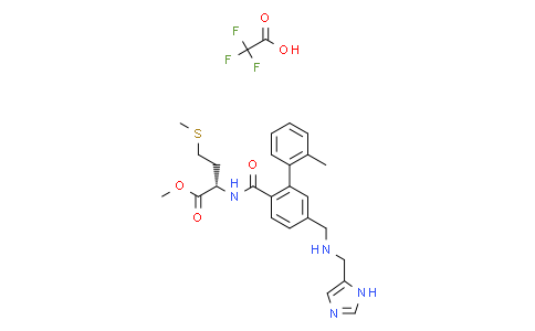 FTI-2153 TFA 是一种有效、高度选择性的法尼基转移酶 farnesyltransferase (FTase) 抑制剂,IC50 为 1.4 nM。FTI-2153 TFA 有效抑制 H-Ras 蛋白的加工修饰,IC50 值为 10 nM,是对其抑制活性是对 Rap1A 蛋白加工的 3000 多倍。