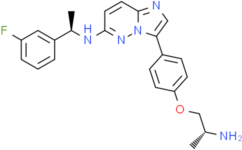 Taletrectinib (DS-6051b) free base 是一种有效的口服活性下一代选择性 ROS1/NTRK 抑制剂。Taletrectinib free base 分别以0.207、0.622、2.28 和 0.98 nM 的 IC50 对重组 ROS1、NTRK1、NTRK2 和 NTRK3 有较强的抑制作用。Taletrectinib free base还抑制 ROS1 G2032R 和其他抗 Crizotinib 的 ROS1 突变体。