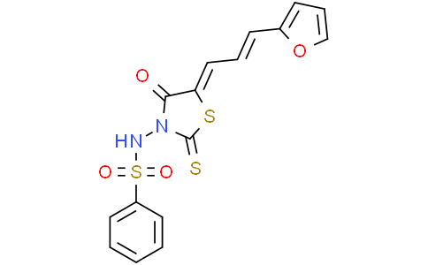(5Z,2E)-CU-3 是一种有效的选择性抗 DGKα 同工酶抑制剂,IC50 值为 0.6 μM,竞争性抑制 DGKα 对 ATP 的亲和力,Km 值为 0.48 mM。(5Z,2E)-CU-3 靶向 DGKα 催化区域,但不靶向调节区域。(5Z,2E)-CU-3 具有抗肿瘤和免疫原性作用,增强癌细胞的凋亡和 T 细胞的活化。