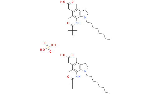 Pactimibe sulfate (CS-505) 是一种 ACAT1/2 双重抑制剂,对于 ACAT1 的 IC50 值为 4.9 μM,对于 ACAT2 的 IC50 值为 3.0 μM。Pactimibe sulfate (CS-505) 抑制 ACAT,其 IC50 值在肝细胞中是 2.0 μM,在巨噬细胞中是 2.7 μM,在 THP-1 细胞中是 4.7 μM。Pactimibe sulfate (CS-505) 非竞争性抑制 oleoyl-CoA,Ki 是5.6 μM。此外,Pactimibe sulfate (CS-505) 明显抑制胆固醇酯的形成,IC50 是6.7 μM。Pactimibe sulfate (CS-505) 具有抗动脉粥样硬化的潜力,可降低血浆胆固醇的活性。