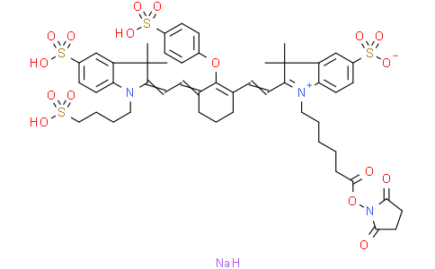 800CW NHS ester 是一种近红外探针,可用于标记赖氨酸残基 (λmax=776 nm)。