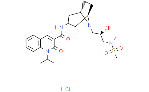 Velusetrag (TD-5108) hydrochloride 是一种具有口服活性,有效和选择性的血清素 5-HT4 受体 (5-HT4R) 激动剂,pKi 为 7.7。Velusetrag hydrochloride 对 5-HT2A 和 5-HT2B 受体没有亲和力 (Ki>10 μM)。Velusetrag hydrochloride 可用于胃肠道疾病和帕金森病的研究。
