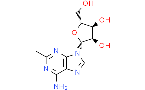 2-Methyladenosine 是一种腺嘌呤核苷类似物。腺苷类似物大多可作为平滑肌血管扩张剂,也被证明能够抑制癌症进展。