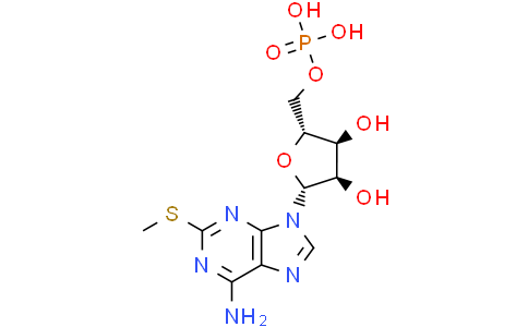 2-Methylthio-AMP 是一种选择性、直接的 P2Y12 受体拮抗剂,通过阻断 ADP 与 P2Y12 的结合,抑制 ADP 依赖的血小板聚集,而对 P2Y1 或其他嘌呤受体无明显作用。