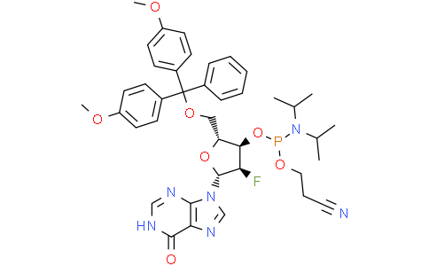 2'-Fluoro-5'-O-DMT-2'-deoxyinosine-3'-CE-phosphoramidite 是一种高纯度、即用型的 2'-F-肌苷亚磷酰胺单体,广泛用于修饰寡核苷酸、RNAi、交联探针及环状二核苷酸的固相合成。