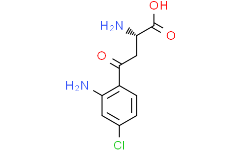 4-Chlorokynurenine 是一种具有口服活性且能穿透血脑屏障的小分子前药。4-Chlorokynurenine 口服或全身给药后,可高效穿透血脑屏障。4-Chlorokynurenine 在星形胶质细胞内经 kynurenine aminotransferase (KAT) 转氨基,生成活性代谢物 7-氯犬尿烯酸 (7-Cl-KYNA)——一种高亲和力、NMDA 受体甘氨酸位点拮抗剂,从而抑制谷氨酸过度激活和兴奋毒性。