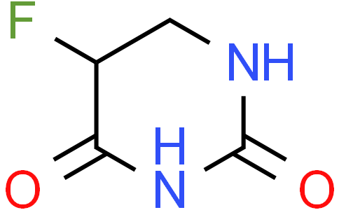 5,6-Dihydro-5-Fluorouracil (5-DHFU) 由 5-氟尿嘧啶在体内经二氢嘧啶脱氢酶 (DPD) 催化还原生成,是 5-FU 代谢的主要中间产物之一。5,6-Dihydro-5-Fluorouracil 可被用作 DPD 功能标志物,缺乏 DPD 的患者 5-FU 无法被有效转化为 5-DHFU,会导致药物蓄积和严重毒性。