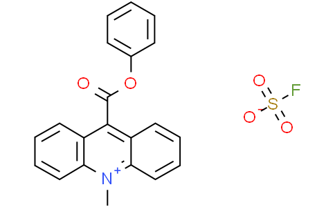 10-Methyl-9-(phenoxycarbonyl)acridinium fluorosulfonate 是一种吖啶酯类的苯基酯衍生物。10-Methyl-9-(phenoxycarbonyl)acridinium fluorosulfonate 是一种荧光染料,在中性条件下即可产生化学发光,常用于高灵敏度检测过氧化氢,也适用于酶联免疫、抗原-抗体及激素等化学发光免疫分析。
