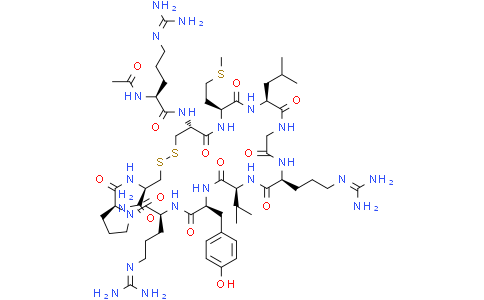 Ac-hMCH(6-16)-NH2 是一种对人脑内促黑素聚集激素(MCH)受体具有高亲和力的非选择性肽类激动剂,Ac-hMCH(6-16)-NH2 能高效结合并激活人脑内的 MCH-1R 和 MCH-2R 两种受体,IC50 分别为 0.16 nM 和 2.7 nM。