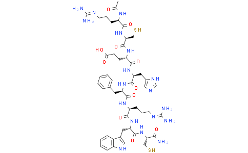 Ac-(d-Arg)-CEH-(d-Phe)-RWC-NH2 是一种高效且高选择性的黑素皮质素-4 受体 (MC4R) 激动剂,属于 β - MSH 衍生的环状八肽化合物。Ac-(d-Arg)-CEH-(d-Phe)-RWC-NH2 显著增加交感神经输出,提高心率与血压。Ac-(d-Arg)-CEH-(d-Phe)-RWC-NH2 还可用于能量代谢、食欲调节研究。