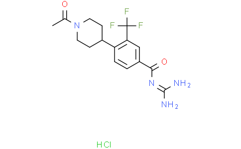 BI-9627 hydrochloride 是一种钠氢交换异构体 1 (NHE1) 抑制剂,在细胞内 pH 恢复 (pHi) 和人血小板溶胀试验中 IC50 值为 6 和 31 nM。BI-9627 hydrochloride 对 NHE2 的选择性大于 30 倍,对 NHE3 没有明显的抑制活性。BI-9627 hydrochloride 表现出较低的 DDI (药物-药物相互作用) 潜力,在大鼠和犬体内良好的药代动力学,在离体心脏缺血-再灌注损伤模型中表现出显著的活性。