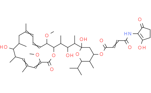 Bafilomycin B1 是一种从链霉菌 (Streptomyces griseus) 发酵产物中分离的大环内酯类抗生素,能够特异性抑制 V-ATPase。Bafilomycin B1 抑制革兰阳性细菌与真菌生长,同时可抑制大肠杆菌 K⁺-依赖型 ATP 酶。Bafilomycin B1 可显著抑制氧化低密度脂蛋白 (LDL) 诱导的脂滴积聚。