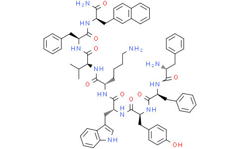 BIM-23056 是一种人工合成的线性八肽,为生长抑素受体 (somatostatin receptor, sst) 拮抗剂,对 sst3 和 sst5 亚型具有高亲和力,Ki 值分别约 10.8 nM 和 5.7 nM。