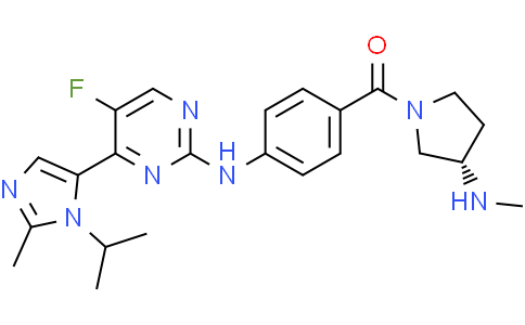 AZD5597 是一种高效、选择性的 CDK1/CDK2 双靶点抑制剂,通过占据 ATP 结合口袋,阻断 CDK1 与 CDK2 的激酶活性,从而抑制肿瘤细胞周期进展并诱导抗增殖效应。