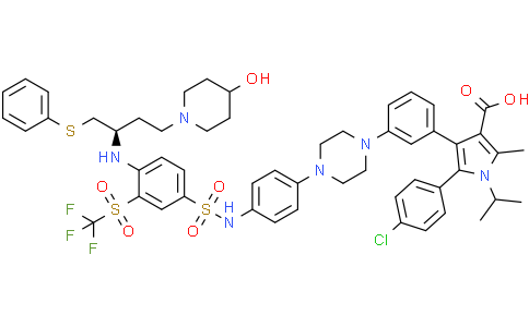 BM-962 是一种强效、高选择性 Bcl-2/Bcl-xL 双重小分子抑制剂,对 Bcl-2 的 IC50 值为 4 nM (Ki=0.8 nM) , 对 Bcl-xL 的 IC50 值为 3.9 nM (Ki <1 nM) 。BM-962 可诱导肿瘤细胞凋亡,用于癌症研究。