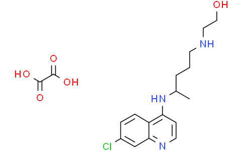 Cletoquine oxalate 是羟氯喹 (Hydroxychloroquine) 在体内的主要活性代谢产物之一,由 CYP2D6、CYP3A4、CYP3A5 和 CYP2C8 等肝酶共同催化生成。Cletoquine oxalate 通过抑制疟原虫血红素聚合、干扰病毒复制/宿主免疫调节发挥活性。
