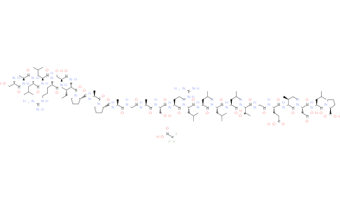 Colivelin TFA 是一种可穿透血脑屏障的合成神经保护多肽。Colivelin TFA 也是 STAT3 强效激活剂,强效激活 STAT3 信号通路,抑制 Aβ 诱导的神经元凋亡。Colivelin TFA 兼具 Ca²⁺/钙调蛋白依赖性蛋白激酶 IV 介导的 ADNF 样保护途径,因此可长期维持突触可塑性、减少淀粉样沉积。