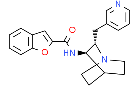 Bradanicline 是一种高选择性 α7 烟碱型乙酰胆碱受体 (α7 nAChR) 激动剂,对 α7 亚型的亲和力比 α4β2 亚型高 1,000 倍以上。Bradanicline 可用于研究认知障碍。
