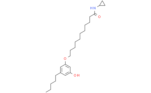 CB-25 是 CB1 大麻素受体部分激动剂,对 CB2 受体作用微弱或无显著活性。CB-25 在癌细胞中可增强福斯柯林 (forskolin) 诱导的 cAMP 升高,但在稳定表达 hCB1 的 CHO 细胞中无此增强效应。