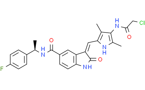 CCG273441 是一种高选择性、共价型 G 蛋白偶联受体激酶 5 (GRK5) 抑制剂,IC50 为 3.8 nM。CCG273441 与 GRK5 亚家族特有的 Cys474 残基形成共价键,从而不可逆地抑制其激酶活性。
