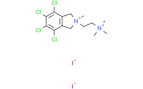 Chlorisondamine diiodide 是一种强效且作用持久的烟碱型乙酰胆碱受体 (nAChR) 拮抗剂,同时具有神经节阻断作用。Chlorisondamine diiodide 通过与 nAChR 结合,阻断尼古丁等激动剂的效应,常用于研究中枢烟碱受体功能及神经节信号传递。