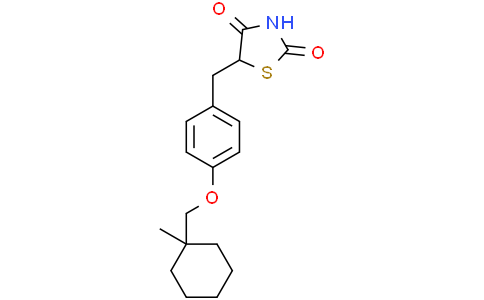 Ciglitazone 是一种过氧化物酶体增殖物激活受体 γ (PPARγ) 的选择性激动剂,EC50 为 3 μM。Ciglitazone 能够激活脂肪、骨骼肌等组织的过氧化物酶体增殖物激活受体γ,改善胰岛素抵抗、降低血糖。Ciglitazone 诱导负鼠肾上皮细胞凋亡 (apoptosis),同时激活 p38 MAPK 和凋亡诱导因子 (AIF) 的核转位。