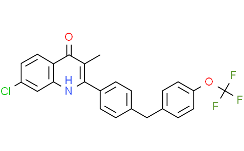 CK-2-68 是一种高活性、喹诺酮骨架的抗疟小分子,靶向疟原虫线粒体呼吸链替代 NADH 脱氢酶 (PfNDH2) 和细胞色素 bc1 复合物 (complex III)。CK-2-68 抑制恶性疟原虫 Plasmodium falciparum 感染的红细胞,IC50 为 40 nM。