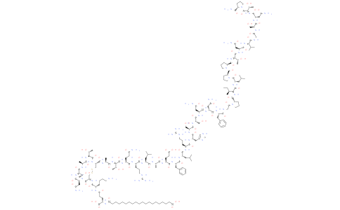 Cagrilintide 是一种长效人胰淀素 (amylin) 类似物,为非选择性胰淀素受体 (AMYR)/降钙素受体 (CTR) 双激动剂 (DACRA)。Cagrilintide 可显着减轻体重并减少食物摄入,可用于治疗肥胖症。