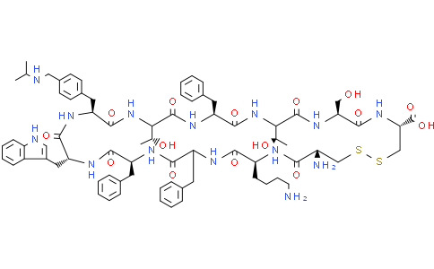 CH 275 是一种人工合成的 生长抑素 (somatostatin) 肽类似物,对生长抑素受体 1 (sst1) 具有高效、选择性激动活性,IC₅₀ 为 30.9 nM,Ki 为 52 nM。CH 275 对 sst3 也有中等亲和力,IC₅₀ 约 345 nM。CH 275 可用于阿尔茨海默病的研究。